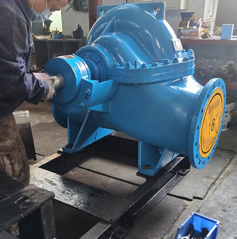 結構設計:單 級雙吸軸向中開蝸殼離心泵,臥式安裝.驅動機(電動機或內燃機)可根據需要設置在泵的左側或右側(即面向出口,驅動機在左側為逆時針旋轉.在右側為順時針旋轉)。
